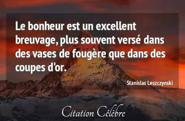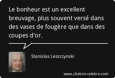 Le bonheur est un excellent breuvage, plus souvent versé dans des vases de fougère que dans des coupes d'or.