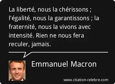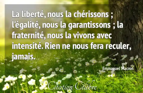 La liberté, nous la chérissons ; l'égalité, nous la garantissons ; la fraternité, nous la vivons avec intensité. Rien ne nous fera reculer, jamais.