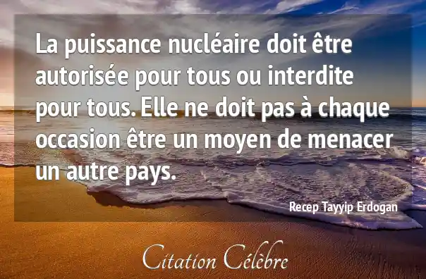 La puissance nucléaire doit être autorisée pour tous ou interdite pour tous. Elle ne doit pas à chaque occasion être un moyen de menacer un autre pays.
