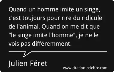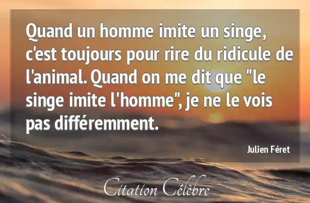 Quand un homme imite un singe, c'est toujours pour rire du ridicule de l'animal. Quand on me dit que "le singe imite l'homme", je ne le vois pas différemment.