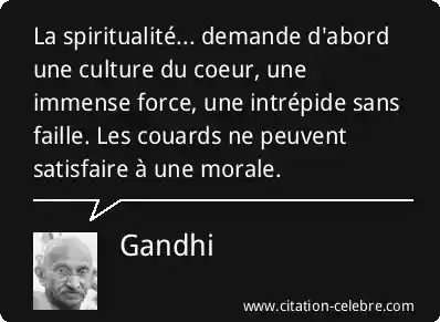 La spiritualité... demande d'abord une culture du coeur, une immense force, une intrépide sans faille. Les couards ne peuvent satisfaire à une morale.