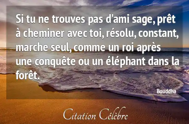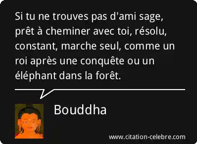 Si tu ne trouves pas d'ami sage, prêt à cheminer avec toi, résolu, constant, marche seul, comme un roi après une conquête ou un éléphant dans la forêt.