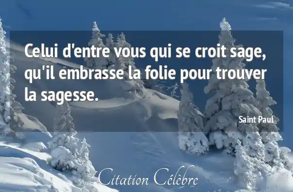 Celui d'entre vous qui se croit sage, qu'il embrasse la folie pour trouver la sagesse.