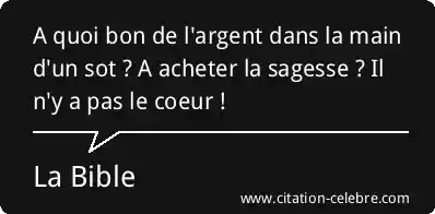 A quoi bon de l'argent dans la main d'un sot ? A acheter la sagesse ? Il n'y a pas le coeur !