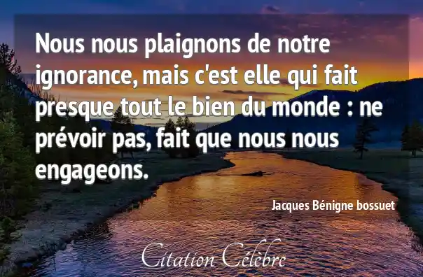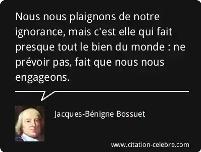 Nous nous plaignons de notre ignorance, mais c'est elle qui fait presque tout le bien du monde : ne prévoir pas, fait que nous nous engageons.