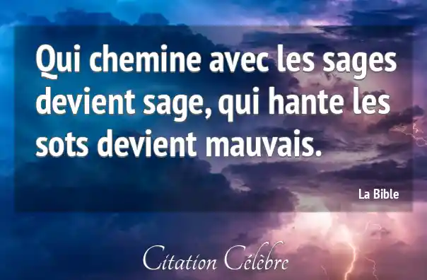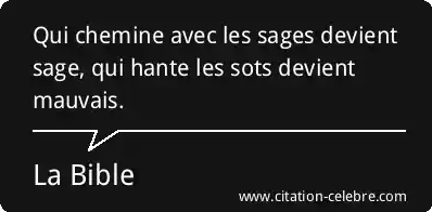 Qui chemine avec les sages devient sage, qui hante les sots devient mauvais.
