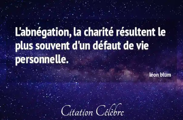 L'abnégation, la charité résultent le plus souvent d'un défaut de vie personnelle.