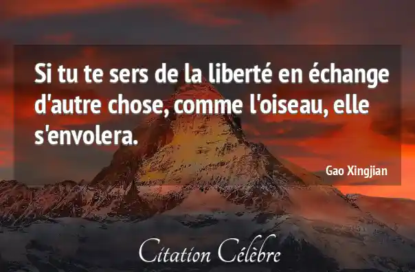 Si tu te sers de la liberté en échange d'autre chose, comme l'oiseau, elle s'envolera.