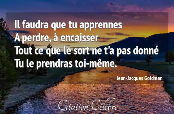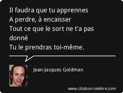 Il faudra que tu apprennes A perdre, à encaisser Tout ce que le sort ne t'a pas donné Tu le prendras toi-même.