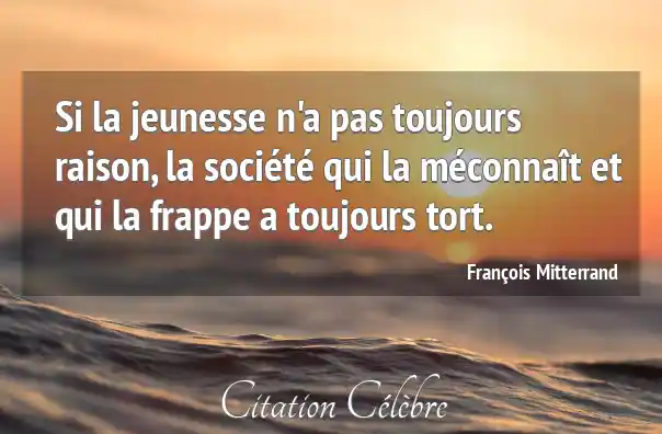 Si la jeunesse n'a pas toujours raison, la société qui la méconnaît et qui la frappe a toujours tort.