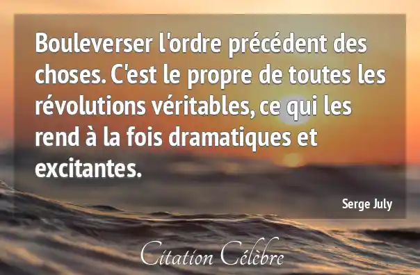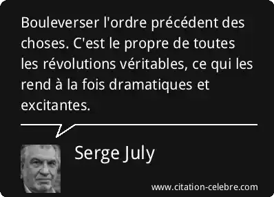 Bouleverser l'ordre précédent des choses. C'est le propre de toutes les révolutions véritables, ce qui les rend à la fois dramatiques et excitantes.