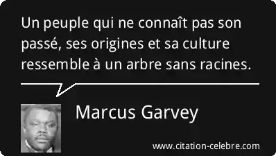 Cette puissante métaphore de Marcus Garvey, « Un peuple qui ne connaît pas son passé, ses origines et sa culture ressemble à un arbre sans racines », signifie que la connaissance de son héritage historique et culturel est essentielle à l'identité et à la stabilité d'une communauté ou d'une nation. De même qu'un arbre a besoin de ses racines pour s'ancrer, absorber les nutriments et résister aux tempêtes, un peuple a besoin de sa mémoire collective pour se comprendre, développer sa fierté et assurer sa pérennité.