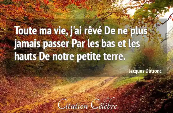 Toute ma vie, j'ai rêvé De ne plus jamais passer Par les bas et les hauts De notre petite terre.