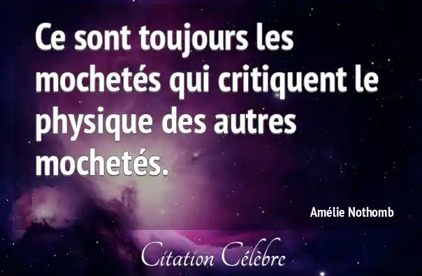 Ce sont toujours les mochetés qui critiquent le physique des autres mochetés.