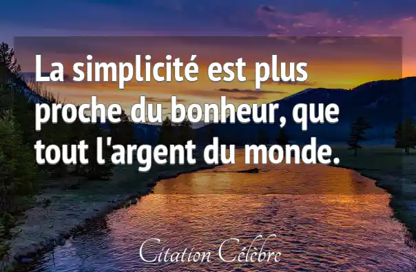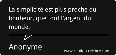 La simplicité est plus proche du bonheur, que tout l'argent du monde.