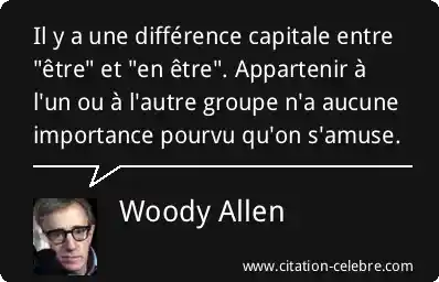 Il y a une différence capitale entre "être" et "en être". Appartenir à l'un ou à l'autre groupe n'a aucune importance pourvu qu'on s'amuse.