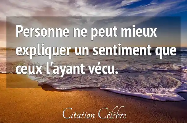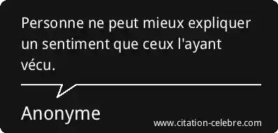 Personne ne peut mieux expliquer un sentiment que ceux l'ayant vécu.