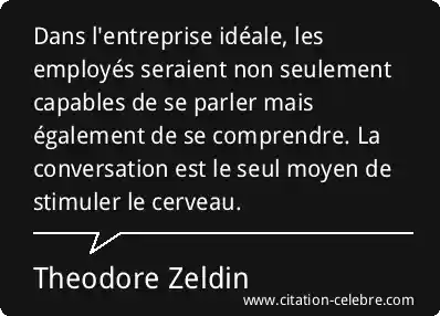 Dans l'entreprise idéale, les employés seraient non seulement capables de se parler mais également de se comprendre. La conversation est le seul moyen de stimuler le cerveau.