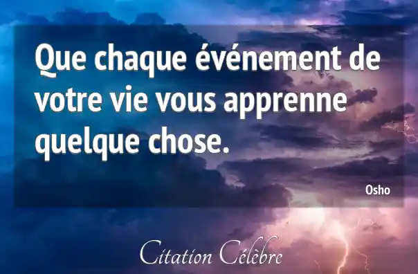 Que chaque événement de votre vie vous apprenne quelque chose.