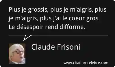Plus je grossis, plus je m'aigris, plus je m'aigris, plus j'ai le coeur gros. Le désespoir rend difforme.