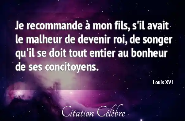 Je recommande à mon fils, s'il avait le malheur de devenir roi, de songer qu'il se doit tout entier au bonheur de ses concitoyens.