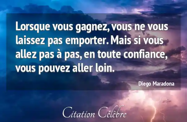 Lorsque vous gagnez, vous ne vous laissez pas emporter. Mais si vous allez pas à pas, en toute confiance, vous pouvez aller loin.