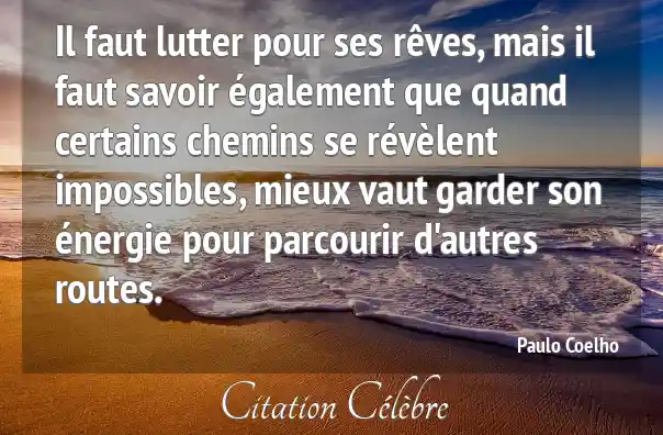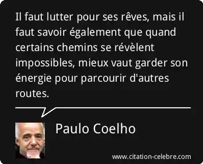 Il faut lutter pour ses rêves, mais il faut savoir également que quand certains chemins se révèlent impossibles, mieux vaut garder son énergie pour parcourir d'autres routes.