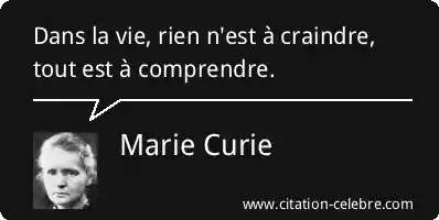 Dans la vie, rien n'est à craindre, tout est à comprendre.