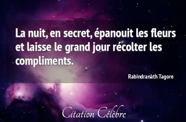 La nuit, en secret, épanouit les fleurs et laisse le grand jour récolter les compliments.