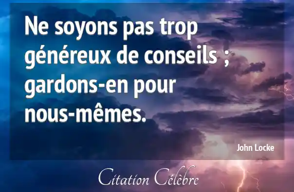Ne soyons pas trop généreux de conseils ; gardons-en pour nous-mêmes.