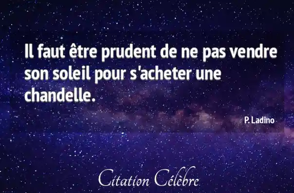 Il faut être prudent de ne pas vendre son soleil pour s'acheter une chandelle.