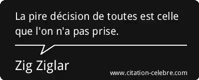 Citation Zig Ziglar decision : La pire décision de toutes est celle que l'on n'a...