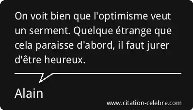 On voit bien que l'optimisme veut un serment. Quelque étrange que cela paraisse d'abord, il faut jurer d'être heureux.
