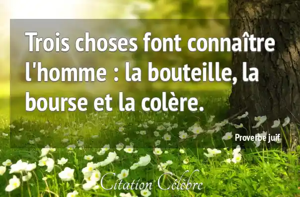 Trois choses font connaître l'homme : la bouteille, la bourse et la colère.