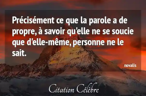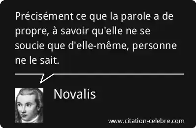 Précisément ce que la parole a de propre, à savoir qu'elle ne se soucie que d'elle-même, personne ne le sait.