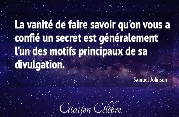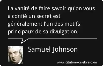 La vanité de faire savoir qu'on vous a confié un secret est généralement l'un des motifs principaux de sa divulgation.