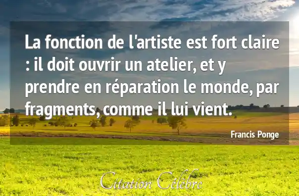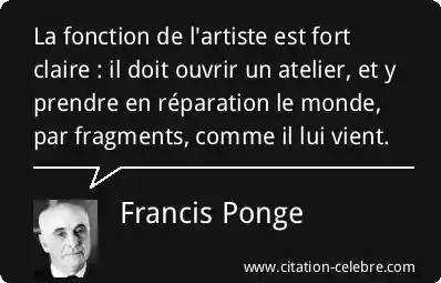 Citation Francis Ponge monde : La fonction de l'artiste est fort claire : il doit...