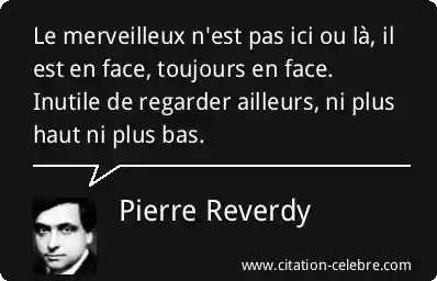 Le merveilleux n'est pas ici ou là, il est en face, toujours en face. Inutile de regarder ailleurs, ni plus haut ni plus bas.
