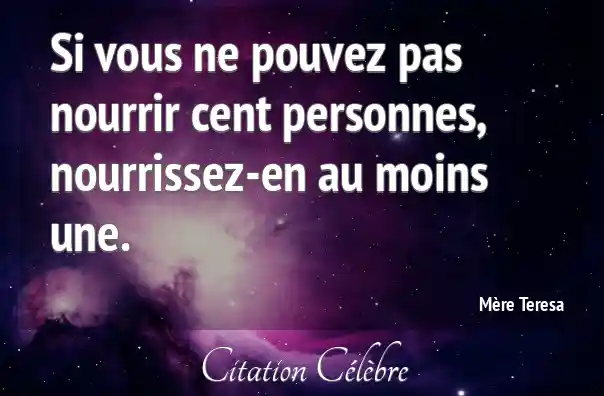 Si vous ne pouvez pas nourrir cent personnes, nourrissez-en au moins une.