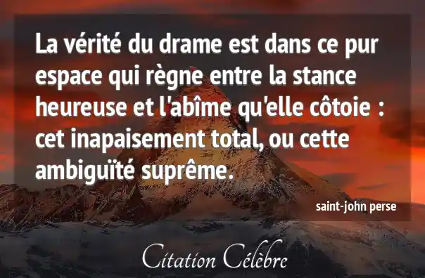La vérité du drame est dans ce pur espace qui règne entre la stance heureuse et l'abîme qu'elle côtoie : cet inapaisement total, ou cette ambiguïté suprême.