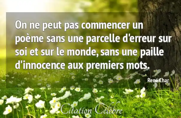 Citation René Char monde : On ne peut pas commencer un poème sans une parcelle...
