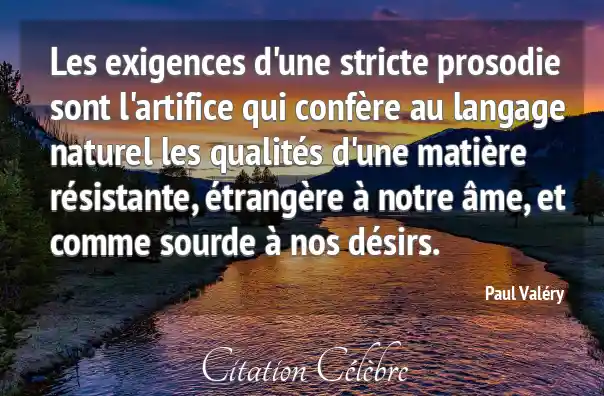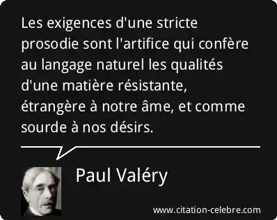 Les exigences d'une stricte prosodie sont l'artifice qui confère au langage naturel les qualités d'une matière résistante, étrangère à notre âme, et comme sourde à nos désirs.