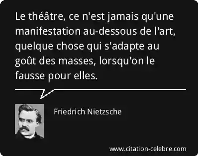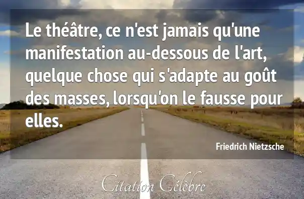 Le théâtre, ce n'est jamais qu'une manifestation au-dessous de l'art, quelque chose qui s'adapte au goût des masses, lorsqu'on le fausse pour elles.