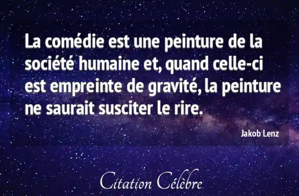 La comédie est une peinture de la société humaine et, quand celle-ci est empreinte de gravité, la peinture ne saurait susciter le rire.