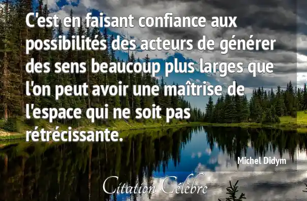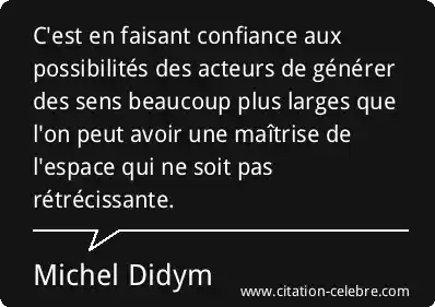 C'est en faisant confiance aux possibilités des acteurs de générer des sens beaucoup plus larges que l'on peut avoir une maîtrise de l'espace qui ne soit pas rétrécissante.
