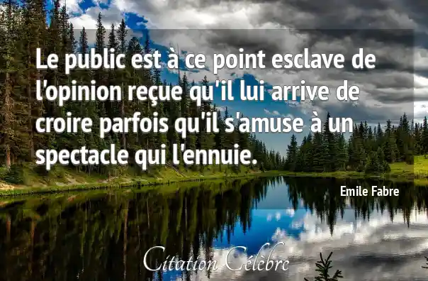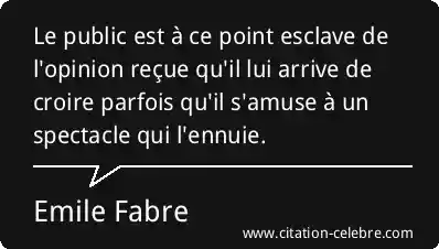 Le public est à ce point esclave de l'opinion reçue qu'il lui arrive de croire parfois qu'il s'amuse à un spectacle qui l'ennuie.
