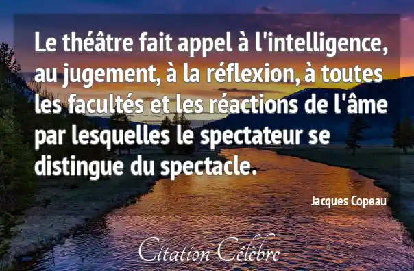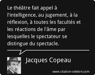 Le théâtre fait appel à l'intelligence, au jugement, à la réflexion, à toutes les facultés et les réactions de l'âme par lesquelles le spectateur se distingue du spectacle.
