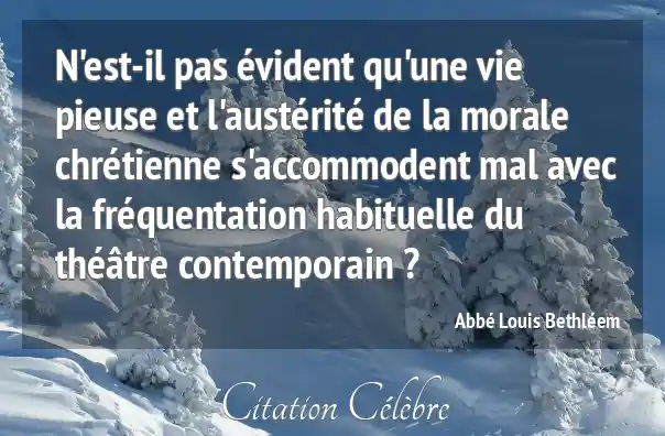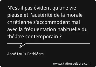 N'est-il pas évident qu'une vie pieuse et l'austérité de la morale chrétienne s'accommodent mal avec la fréquentation habituelle du théâtre contemporain ?