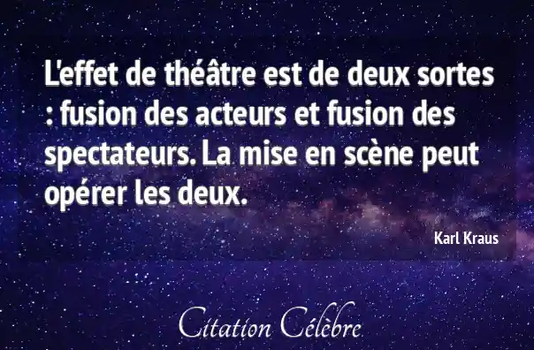 L'effet de théâtre est de deux sortes : fusion des acteurs et fusion des spectateurs. La mise en scène peut opérer les deux.