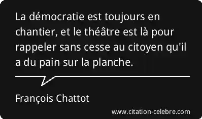 La démocratie est toujours en chantier, et le théâtre est là pour rappeler sans cesse au citoyen qu'il a du pain sur la planche.